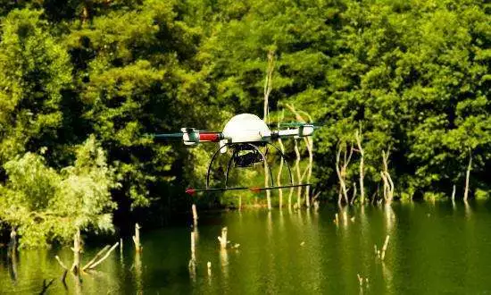 無人機(jī)可搭載流速流量計(jì),進(jìn)行水體流速的測量。當(dāng)無人機(jī)飛到水面上空時(shí),將攜帶的流速流量計(jì)深入到水面以下三米左右處,進(jìn)行水流速度測量,且測量的數(shù)據(jù)均會存儲在流量流速計(jì)中,過幾分鐘后,帶數(shù)據(jù)測量穩(wěn)定,可將無人機(jī)飛回,地面人員通過存儲的數(shù)據(jù)進(jìn)行查看。