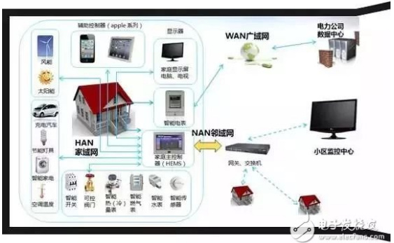 一幅全景式的智能電網(wǎng)家庭用戶示意圖